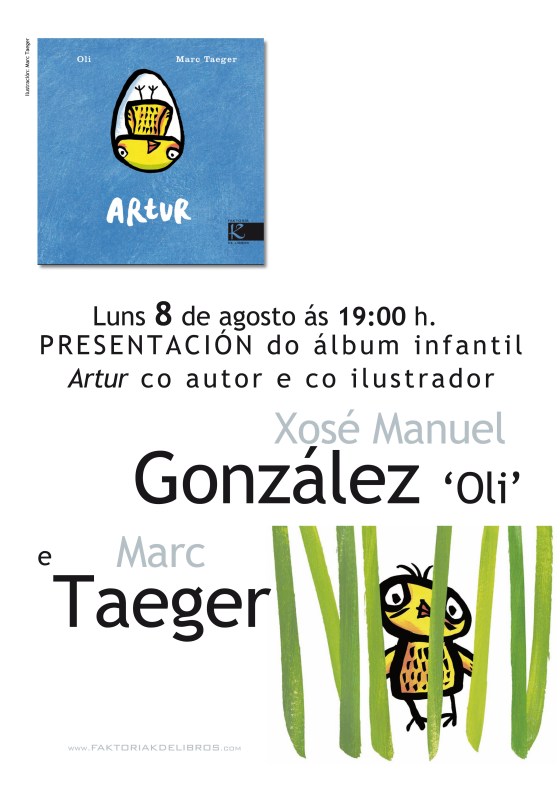 […] ilustrado “O Señor Don Nicanor“, hoxe é o turno de “Artur“: o escritor Xosé Manuel González ‘Oli’ e o ilustrador Marc Taeger manterán un encontro cos lectores para darlles a coñecer a entrañable […]