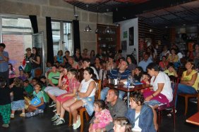 A pesar dos nervios de facer a presentación inicial, as cousas se desenvolveron nun ambiente cálido e durante a lectura do libro contamos coa gran axuda de Nicolás Martínez no vibráfono. Grazas de corazón, Nico. Nico foi, ademais, coprotagonista da experiencia que orixinou o nacemento de Artur.